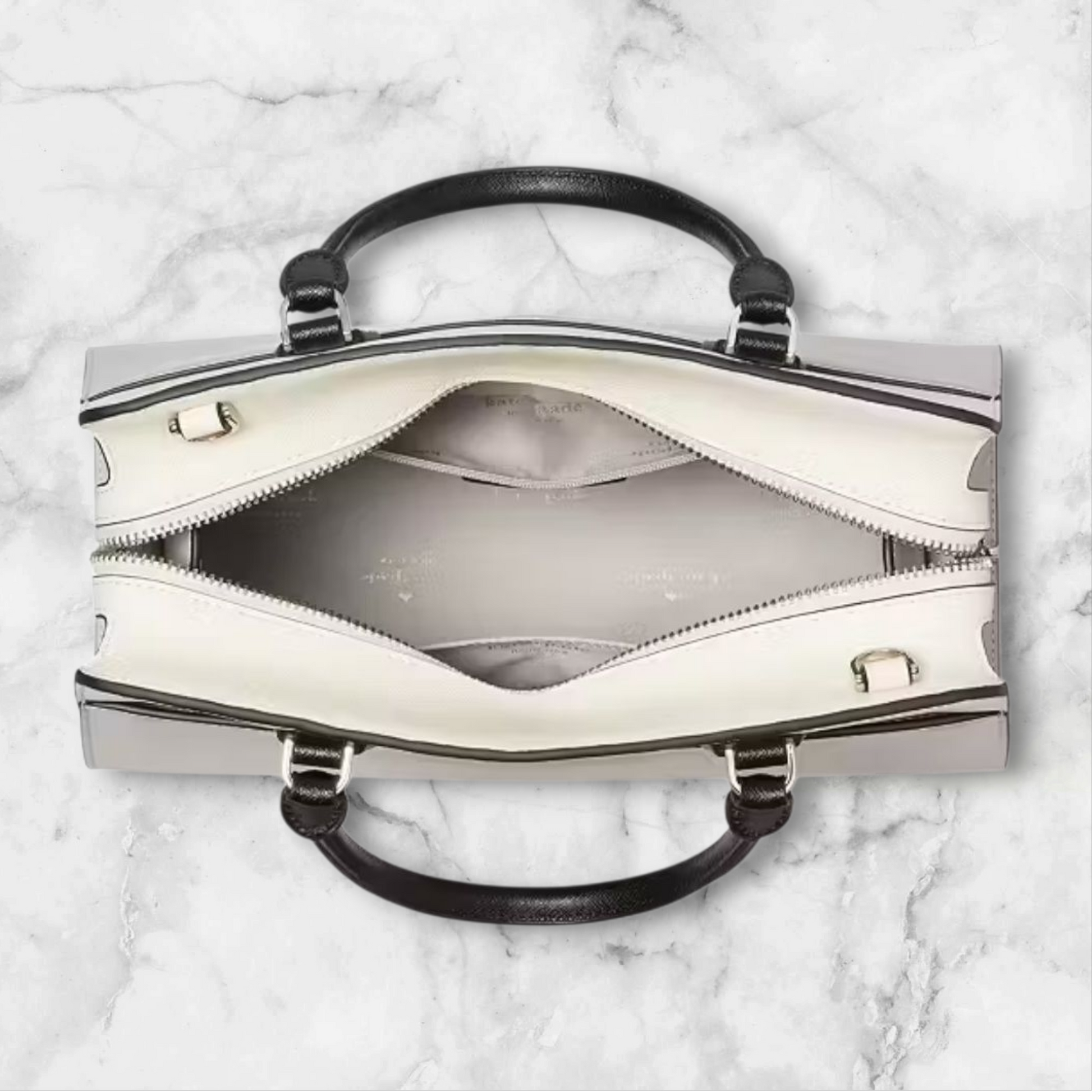 Elegant and versatile, this Kate Spade bag features a sophisticated gray and white design. Perfect for any occasion, it combines style and functionality effortlessly.