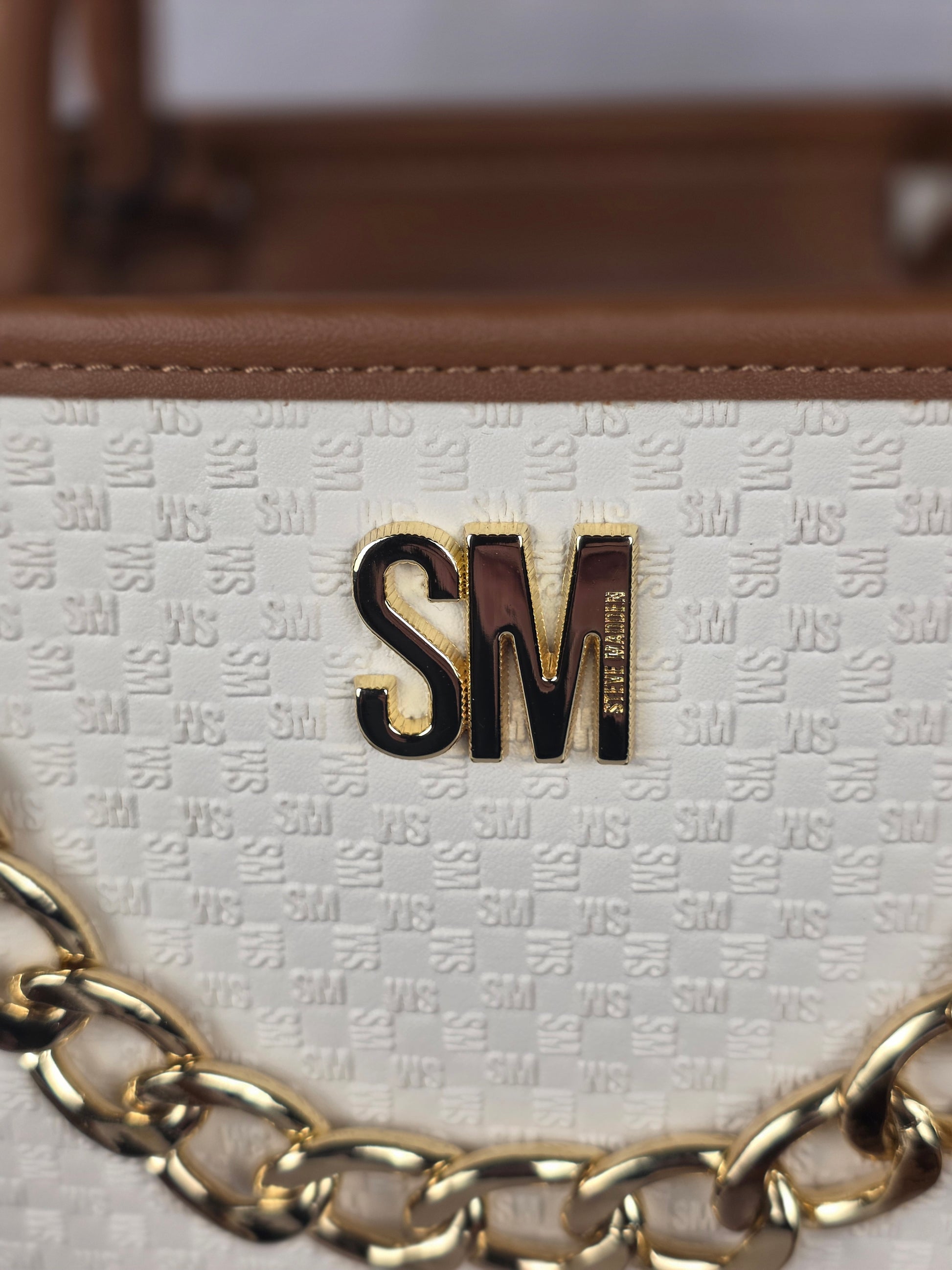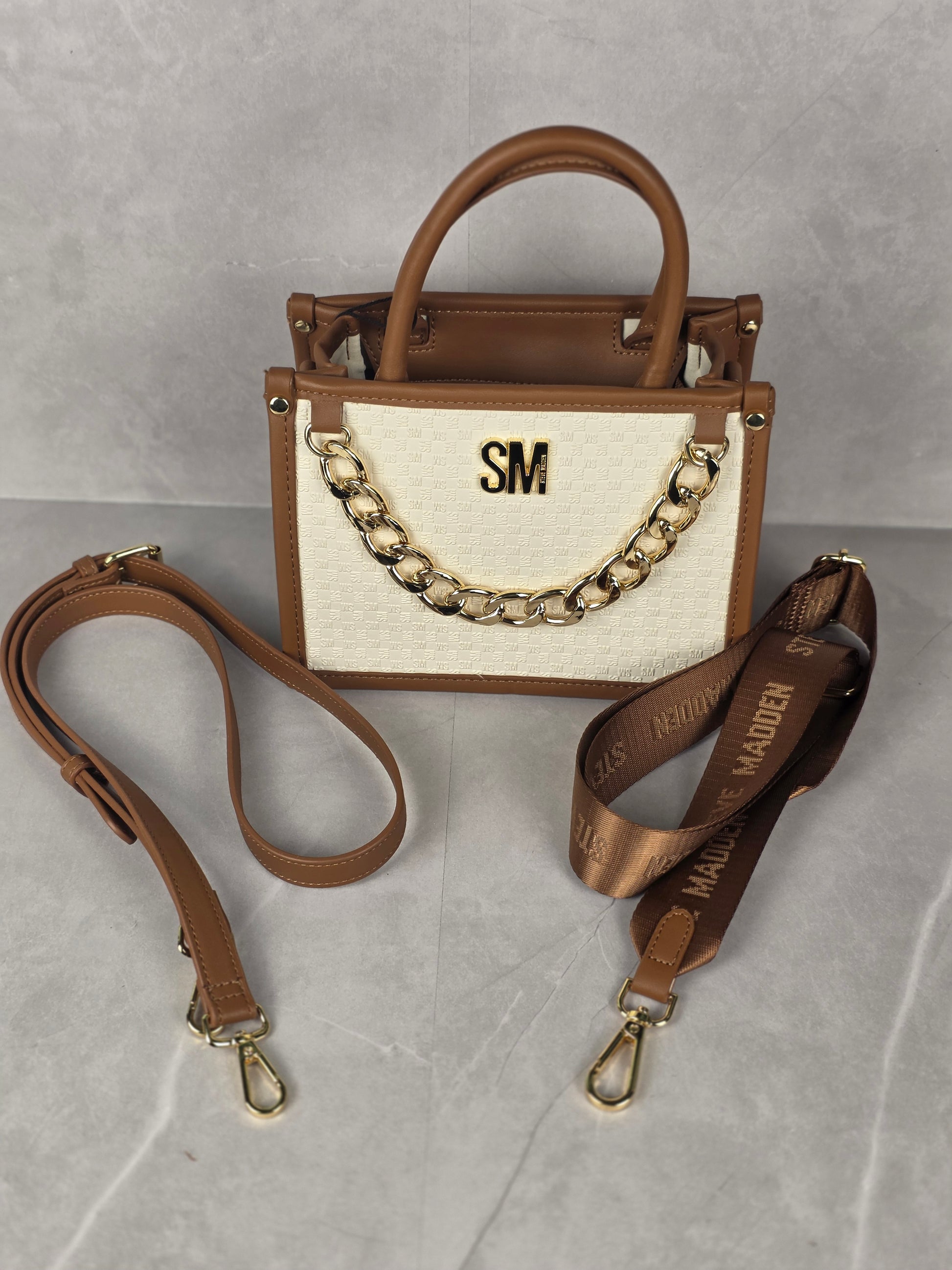 Steve Madden Elegant handbag featuring a stylish brown and cream design. Perfect for any occasion.